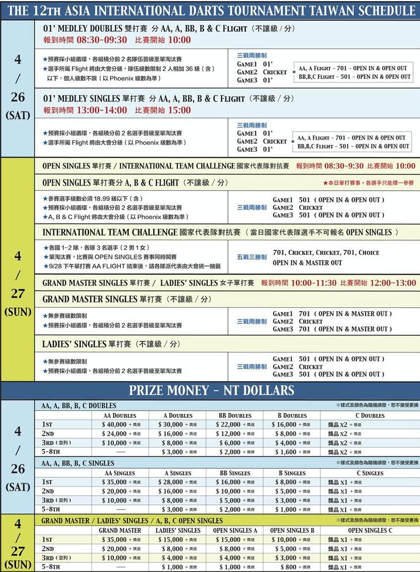 第12屆亞洲國際飛鏢公開賽詳情
